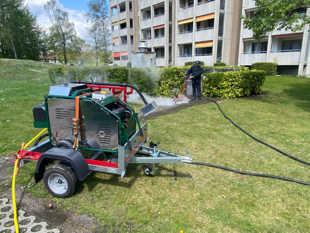 Das kompakte Dampfwunder mit oder ohne Anhänger für Gärtner, Hauswarte, Privatpersonen, etc. Direkt an Wasser anschliessen fürs ums Haus