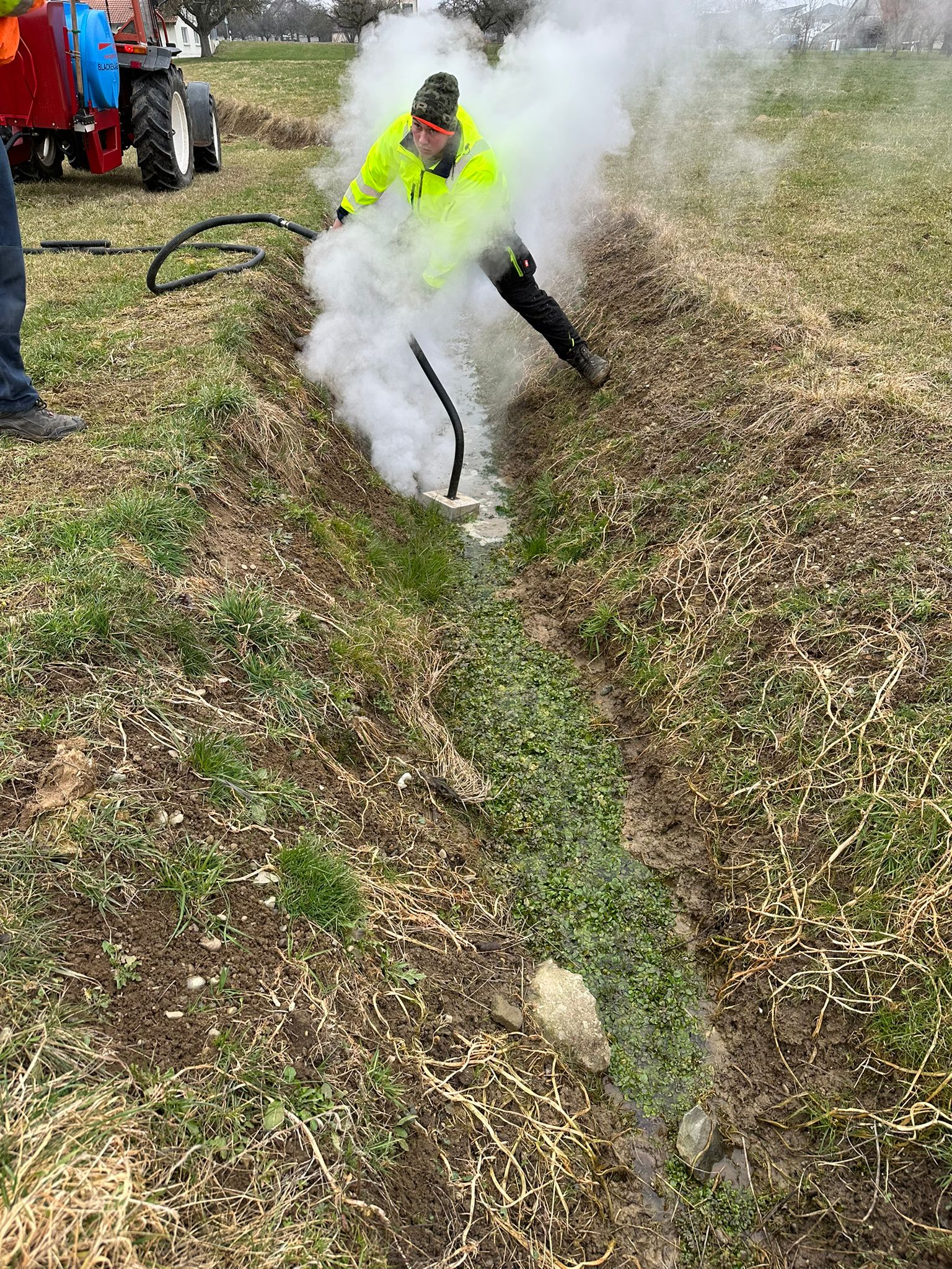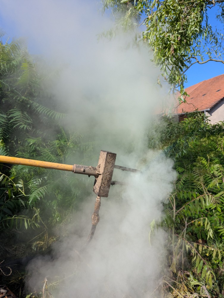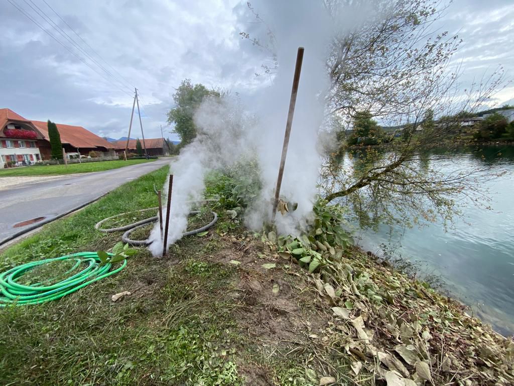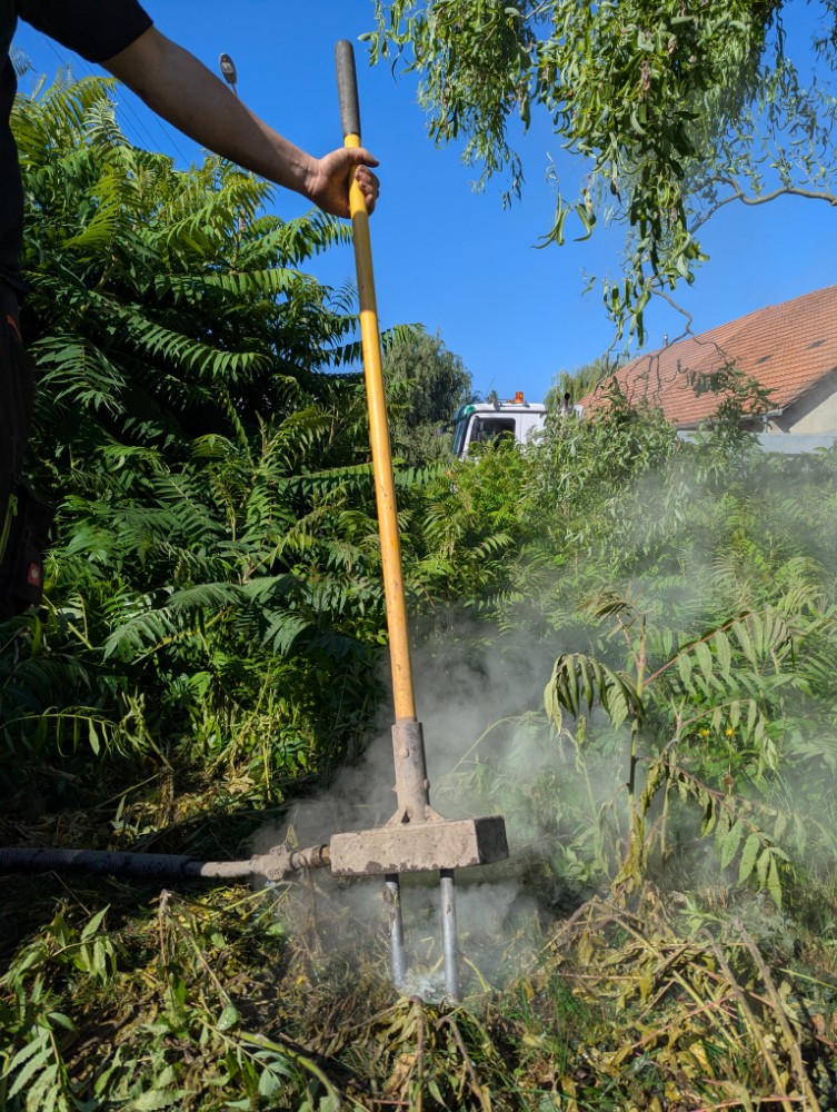 Der heisse Dampf löst einen Eiweissschock in der Pflanze aus. Die Zellen werden zerstört, die Wasseraufnahme blockiert – die Pflanze stirbt vollständig ab, inklusive Keimen und Wurzeln.
