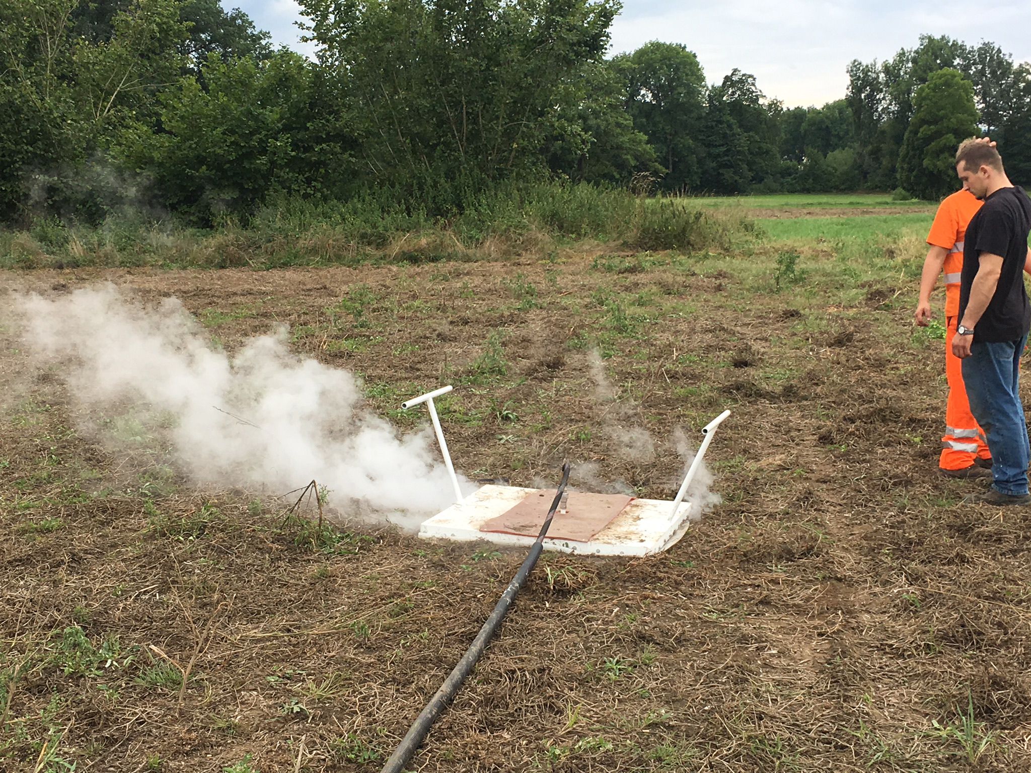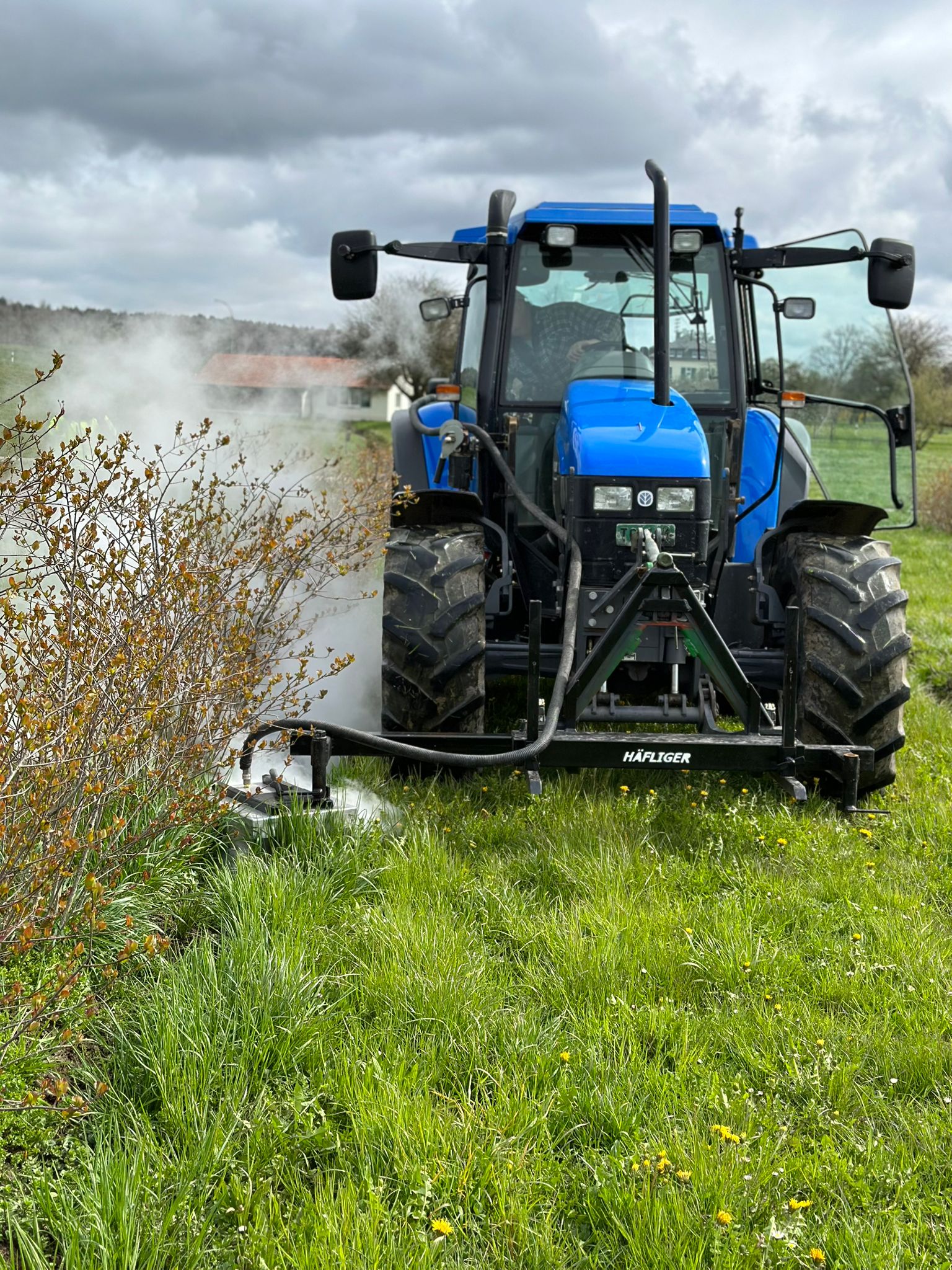 Mit speziell entwickelten Geräten (auch für Front- oder Kommunalaufbauten) wird der heisse Dampf gleichmässig auf die Fläche aufgetragen. Er dringt in die Oberfläche ein, zerstört die Zellstruktur der Pflanzen und tötet Keime sowie Wurzeln ab – langanhaltend und rückstandsfrei.